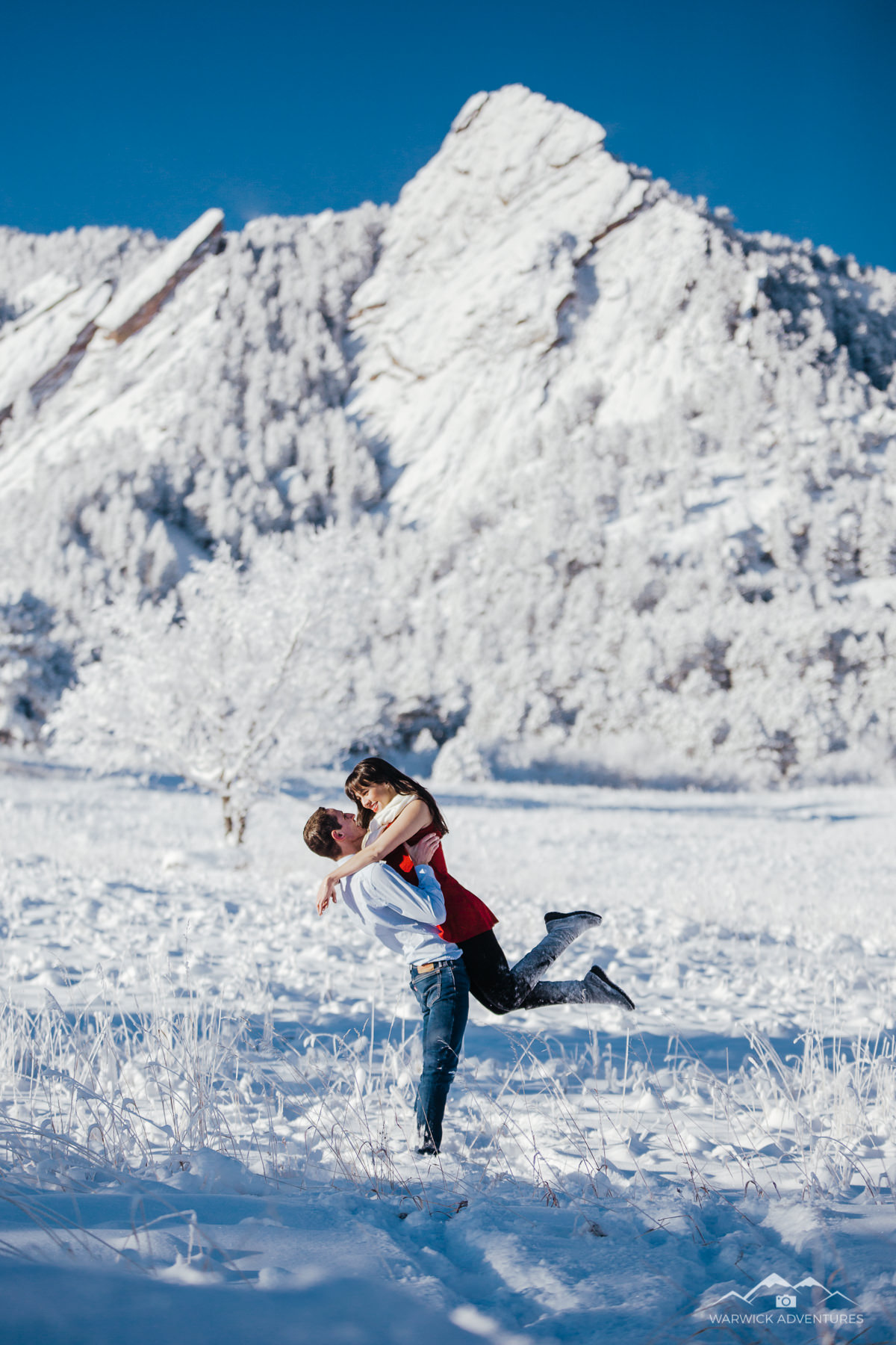 Doudy Draw is one of the most epic locations on the list because of the incredible vista views that it reveals of the Flatirons of Boulder. In the colder months of the year, you might get snowed on, as we did for this engagement session! This is a location where I would recommend that you bring a pair of comfortable shoes; hiking is required.